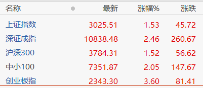 众多指数中,创业板指数的涨幅最高,达到了3.6%。