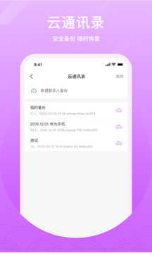 2、而且,还可以在云端备份多份通讯录,并随时选择正确的备份恢复到设备,简单好用;