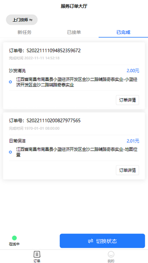 2、更多的订单情况都是可以进行实时解决的,让小伙伴可以自由的进行不同的及时接单的身份进行切换。