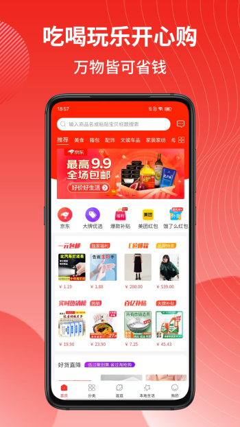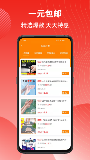 1、每日会推出各式各样的促销活动,限时秒杀还是九块九包邮,只为让大家买的最便宜;