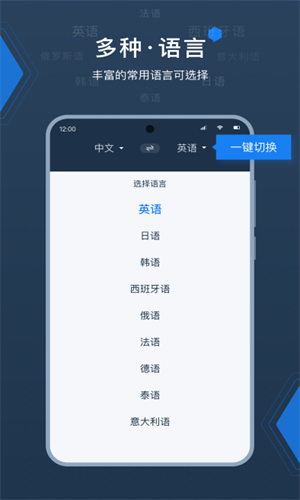 1.包含有多种语言能够智能识别查看管理切换,丰富的常用语言选择快捷高效识别翻译功能免费体验。