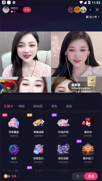 3、酷炫的礼物,各种炫酷的礼物,丰富多彩的互动形式,嗨翻全场,从此不孤单;