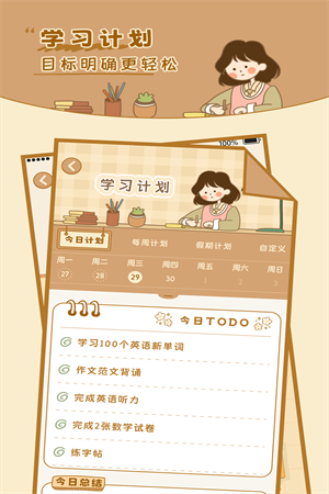 3、更包含的为用户进行在线的学习进行陪伴的教育,给用户更好的进行清单的学习进行计划使用。