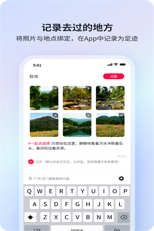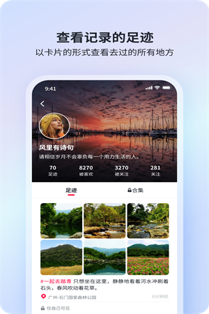 迹忆记录app是非常简约又好看的足迹出游的记录软件,给用户进行随时的记录进行服务,主要是服务于用户对于旅行轨迹进行记载进行使用的,更好的进行足迹、图片、文字等进行随时的记录进行管理,给用户进行随时的修改进行编辑,提速用户的记录选择进行体验。