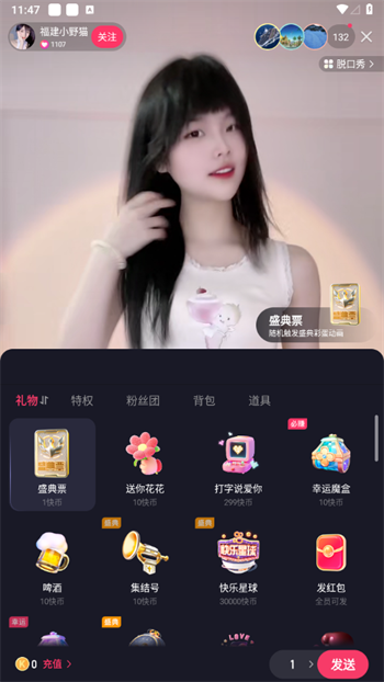 3、丰富的礼物供你选择,如舞蹈、送花、飞吻等,就算你不会说话,也能通过礼物来表达你的心意;