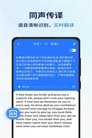 3、让用户在旅游、商务洽谈等情况下更加便捷,实现更加优质的手机同声翻译进行体验服务。