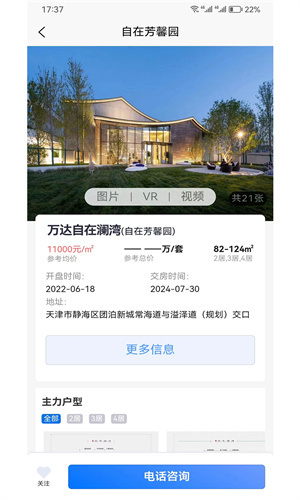 1.支持通过电话咨询来了解对应优质房源信息管理,同时支持进行获取对应相关主力户型介绍内容。