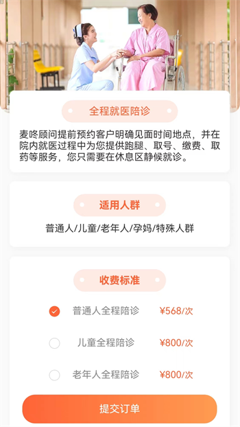 2、支持全科医生的门诊陪诊服务,在就医过程中可为用户提供全程陪护和指导;