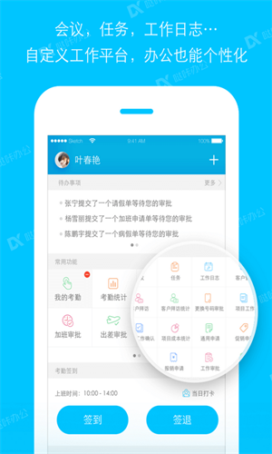 1.多功能综合办公提供多种实用功能,包括文件管理日程安排通讯录审批流程通知公告非常实用。