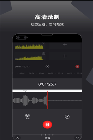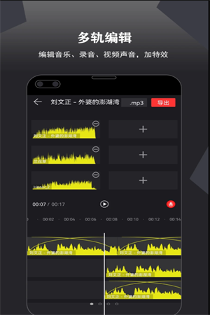 1、卷音录音机支持多个音频轨道的并置编辑,可实现复杂的音频剪辑进行体验,提升用户的剪辑需求。