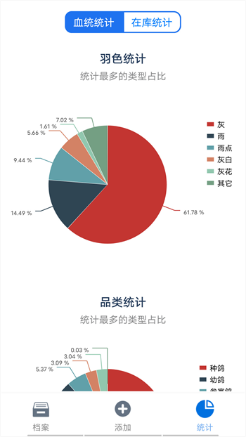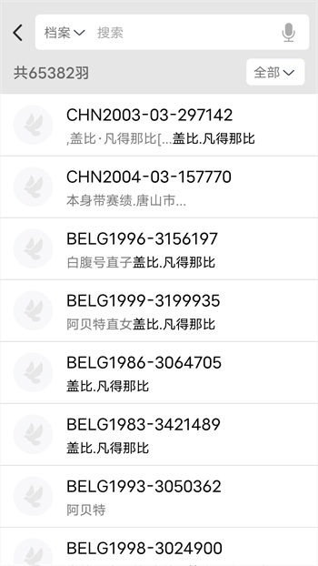4、详细的数据统计功能,包括历次比赛成绩、鸽子血统、饲料管理等,帮助用户更好地管理自己的赛鸽群;