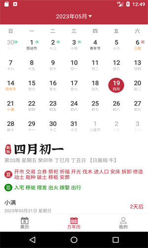 每日黄历开放各种黄历百科,介绍历史文化节日习俗民俗谚语等相关内容学习更多。可以便捷地查询公共假期万年历,以及相关胎儿宝宝性别预测黄道吉日选择。用户体验设计以及使用流程方面都十分良心,完全符合现代人的使用要求。