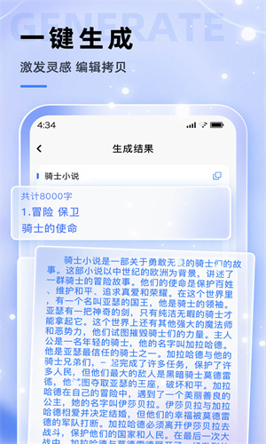 1.高效节约时间支持快速生成小说情节和文章内容,为用户节省大量时间和精力,提高效率。