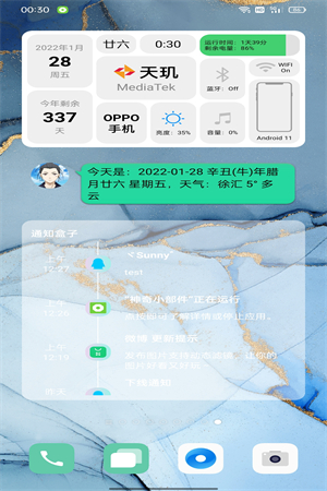 1、各种类型的组件工具,如天气预报,记事本,时钟闹钟,音乐播放器等等,用户可以根据需要随心搭配,轻松布置自己的桌面。