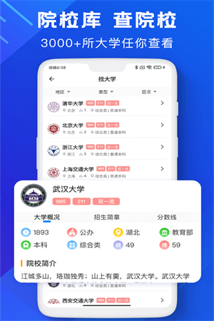 2、提供优质的搜索引擎的使用,超过1000万的专业数据与海量的院校信息,可以非常快速地为用户匹配心仪大学。