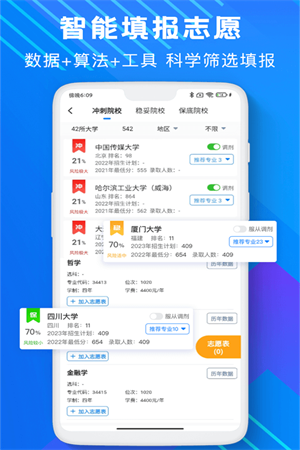 3、在用户填写完自己的信息和志愿后,应用会通过智能算法和大量高考数据给出最良好的建议。