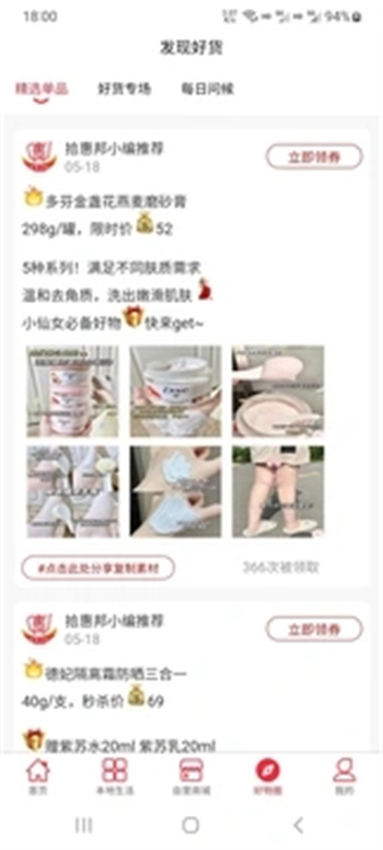 拾惠邦app是一款集导购、本地生活、自营商城、好物分享于一体的综合购物平台,与各大电商平台的百万商家合作,每天更新上架各种专享优惠券商品,全部人工挑选,择优排序,以便为用户提供更加合理优惠的购物体验,还有丰富的优惠活动和折扣信息,让大家真正享受到了省钱购物的乐趣,轻轻松松在网上购物省下不少的生活开销,网购就来拾惠邦!