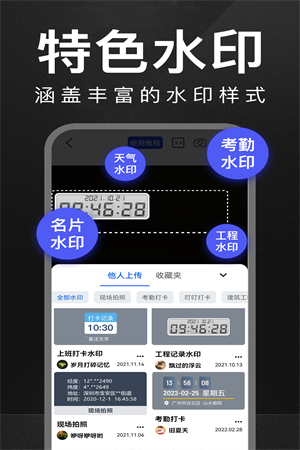 2、数千个水印模板,满足日常考勤、旅行、工程等多个场景需求,并可在线下载更多精美模板,为用户提供更加个性化的拍摄体验。