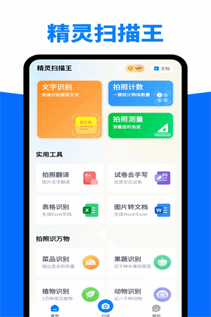精灵扫描王app是一款非常快捷的拍照识图的软件,这里提供超多的文字识别、拍照计数、测量、识别万物等多种服务,能够让用户更加便捷地进行电子识别体验。凭借着强大的功能和稳定的性能,在线的使用提升用户的办公效率。