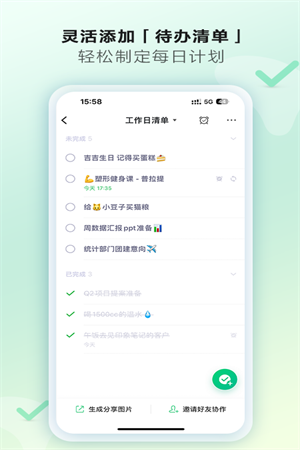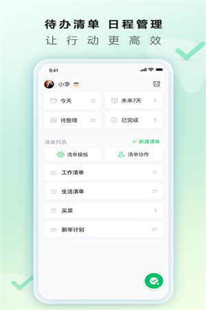 1、支持添加任务、创建清单列表、设置提醒等功能,让您能够清晰地记录每一个任务,有效规划自己的时间。