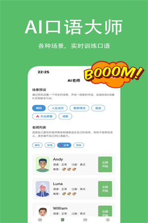 ai口语大师app是为需要提升英语口语进行服务的平台,这里提供非常专业的ai机器人对话的功能,这里为用户提供更多的英语口语学习资讯和课程,帮助小伙伴可以更好的使用美式标准发音进行随时训练,满足用户对于英语的使用需求。