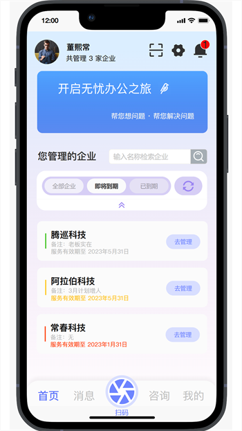 丁香管家app是非常好用的企业单位管理工具,采用了先进的移动端操作技术、丰富实用的功能模块和安全保障技术,让用户在管理工作中更加高效便捷,推荐大家免费来这下载使用它!