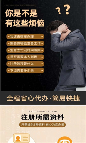 2.高效快捷提供快速注册服务,能够大大缩短注册时间和成本,让用户更快获得营业执照。