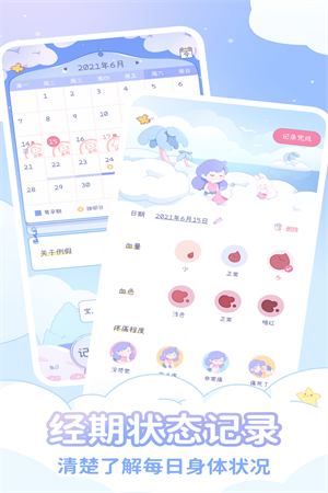 1、可以根据用户的经期记录,精准预测姨妈周期,让用户在经期到来之前早有准备,避免突然来袭的烦恼。