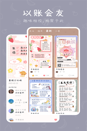 千千手帐app是一款拥有少女风格的手机日记的软件,功能都是免费进行编辑使用的,提供海量的素材,为用户更好的进行手账设置,这里你可以随意进行编辑排版,掌握最新的热门手账技巧,并可以根据自己的喜好使用各种素材和主题,打造出属于自己的手账。满足用户进行日记手账的记录,超多的功能都是可以进行升级的,满足用户对于笔记手账的选择提供帮助。