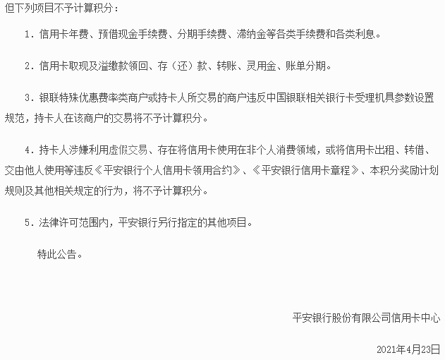 平安白金出新规,生日月5倍积分缩水 admin 2021年04月22日 17:26 251 0 就在刚刚,平安突发公告!公告很长,很多人还听不懂。我就简单一句话:之前生日月能拿100万积分,现在想拿100万除非你25万额度。生日当月积累的4倍奖励积分上限,不超过账户固定额度的4倍。这话就是说你有多少额度,生日当月最多奖励多少额度。你有5万,最多奖励20万,加基础分5万合计25万。这是之前的平安生日月图! 本文地址: //m.virtuarts.com/xyk/5217 文章来源: admin 版权声明:本站内容来自网络,如有侵权,请联系站长删除!投资有风险,入市需谨慎!